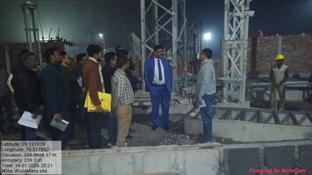 प्रबंध निदेशक ने ‘राउंड-द-क्लॉक’ शिफ्ट में कार्य कर समयबद्ध पूर्णता पर ज़ोर देते हुए कहा कि परियोजना की गति और गुणवत्ता—दोनों से कोई समझौता नहीं होना चाहिए। उनका संदेश स्पष्ट था: ऊर्जा अवसंरचना समय पर तैयार होगी, तभी विकास की रफ्तार बनी रहेगी। इस परियोजना के पूर्ण होने से धौला खेड़ा और आसपास के क्षेत्रों में घरेलू उपभोक्ताओं के साथ-साथ उद्योगों को निर्बाध, स्थिर और गुणवत्तापूर्ण बिजली मिलेगी, जिससे आर्थिक गतिविधियों को गति और निवेशकों का भरोसा दोनों बढ़ेंगे। निरीक्षण के दौरान मुख्य अभियंता पंकज कुमार, अधीक्षण अभियंता एल. एम. बिष्ट, संदीप कौशिक, राकेश पंकज कुमार सहित अधिशासी अभियंता एवं अन्य अधिकारी-कर्मचारी भी उपस्थित रहे। टीम ने तकनीकी मानकों, सुरक्षा प्रोटोकॉल और समय-सीमा पर फोकस के साथ कार्ययोजना को अंतिम रूप देने पर सहमति जताई।